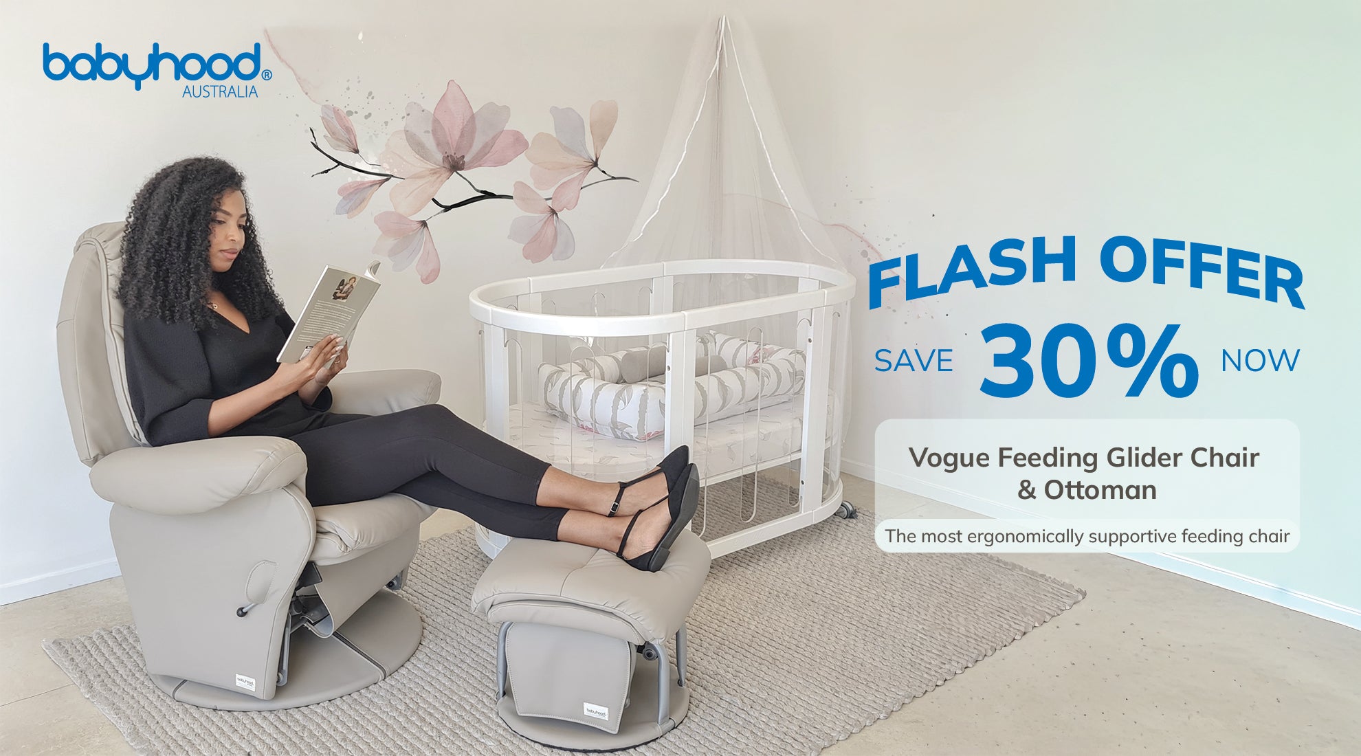 Vogue Feeding Glider Chair & Ottoman Boucle Cream